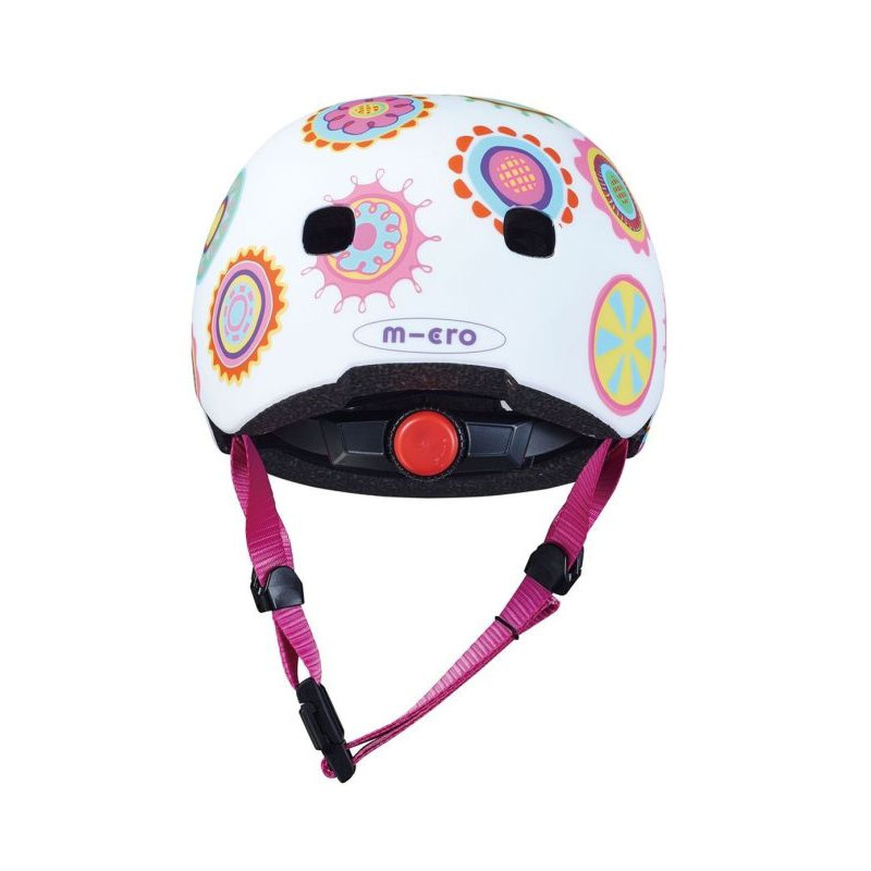 Bezpečná přilba značky Micro s nastavitelnou velikostí pomocí upínacího kolečka. Přilba je vhodná pro jízdu na koloběžce, dětském odrážedle, kolečkových bruslích a skateboardu. Extra polstrování uvnitř přilby pro větší komfort a bezpečí. 8 větracích otvorů zajistí kvalitní odvětrávání hlavy. Přilba má LED světlo se třemi režimy (2 varianty blikání, 1x svícení). Baterie (CR1632 3V) je vyměnitelná otočením červené krytky za pomoci větší síly. Při výběru přilby, doporučujeme uživateli změřit obvod hlavy a dle naměřených hodnot vybrat správnou velikost. V souladu s normou evropské unie: EN1078Více