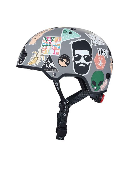 Bezpečná přilba značky Micro s nastavitelnou velikostí pomocí upínacího kolečka. Jedná se o přilbu s designem samolepek. Přilba je vhodná pro jízdu na koloběžce, dětském odrážedle, kolečkových bruslích a skateboardu. Extra polstrování uvnitř přilby pro větší komfort a bezpečí. 8 větracích otvorů zajistí kvalitní odvětrávání hlavy. Inovativní magnetický systém zapínání výrazně zvyšuje bezpečnost a zjednodušuje zapínání řemínku pod bradou.