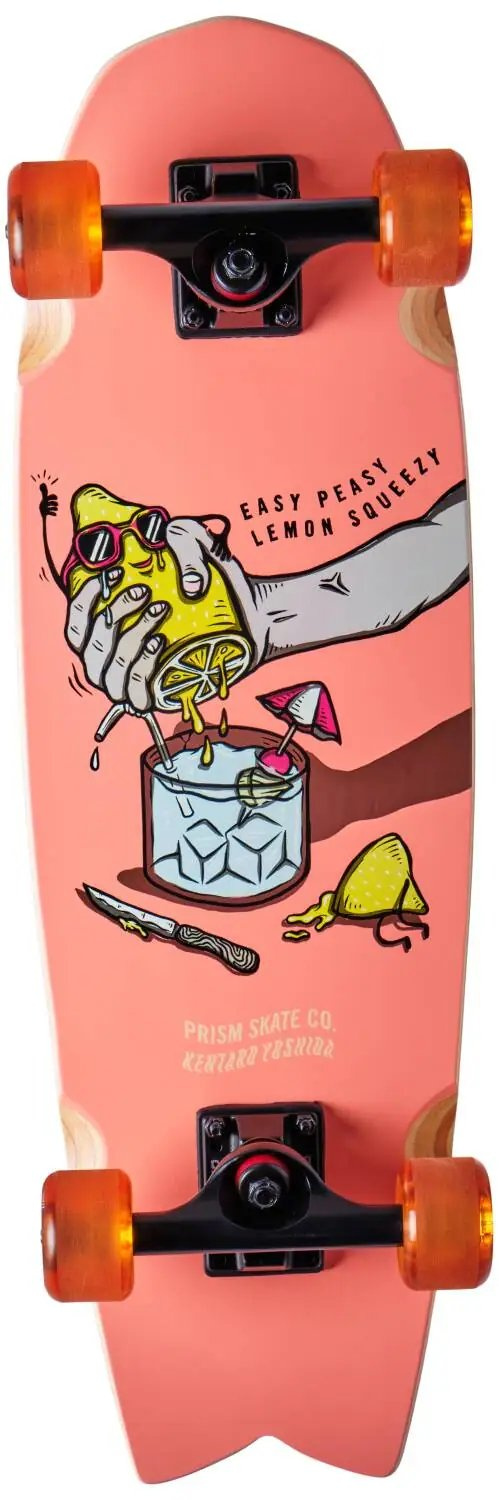 Je kompletní s standardními trucky Caliber, kolečky Prism a ložisky Blood Orange. Prkno Prism Grit je ze série Resin, která má grafiku od Kentaro Yoshida.