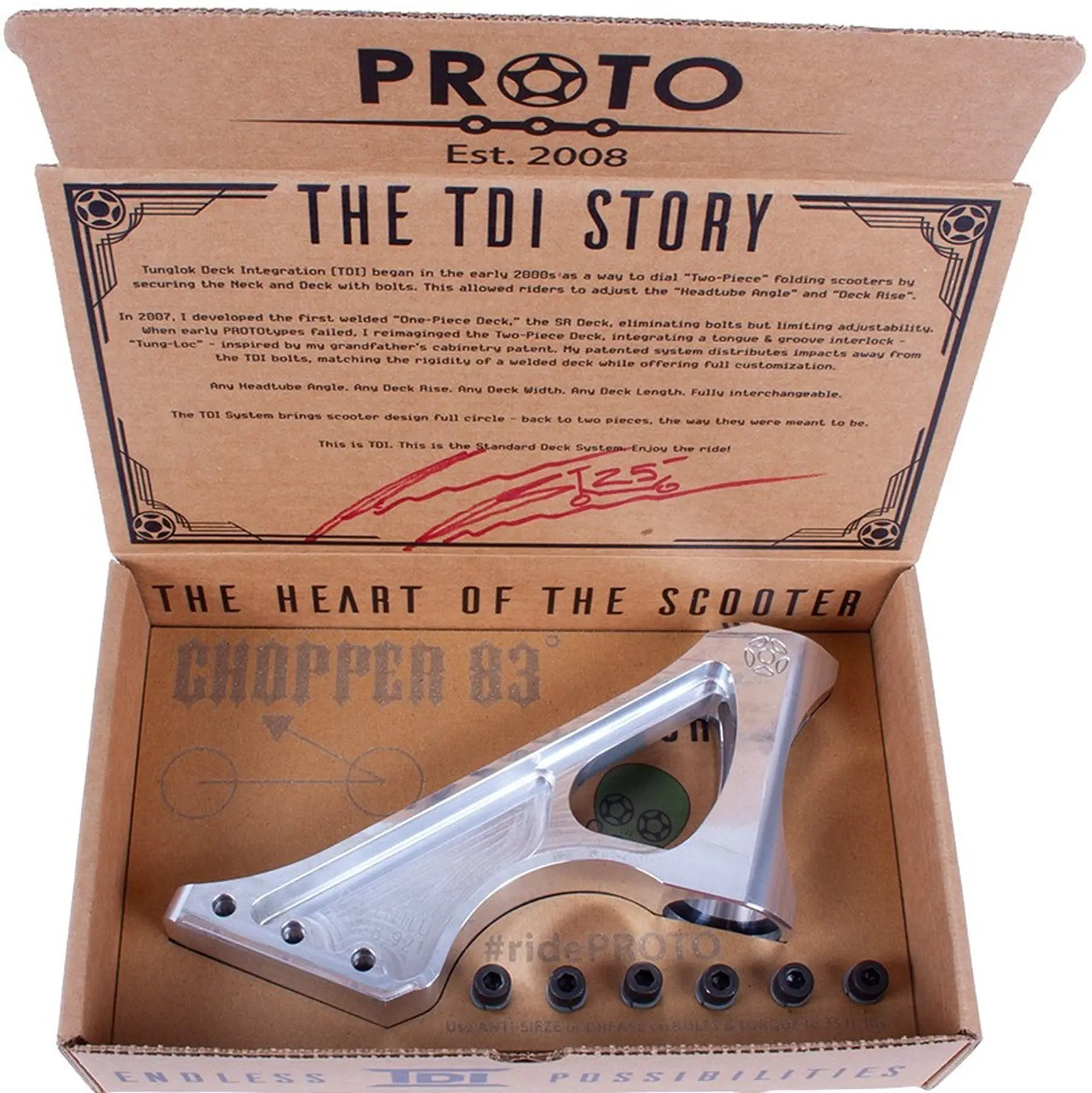 Proto Chopper Nex Pro koloběžkový krk je navržen pro pokročilé a profesionální jezdce, kteří hledají přesnost a výkon. Nabízí odolnost a lehkou funkčnost při hmotnosti pouhých 662,24 g. Díky integrovanému hlavovému složení a možnostem úhlu hlavové trubky 83°, 84° a 85° vyhovuje různým stylům jízdy. Díky zesílené konstrukci I-Beam a elegantním zaobleným rohům zajišťuje tento krk optimální pevnost a estetiku. Každý kus je sestaven s pečlivou CNC přesností v továrně Proto v San Diegu a je individuálně označen razítkem pro ověření pravosti, což zaručuje bezkonkurenční kvalitu ve freestylovém scooteringu.