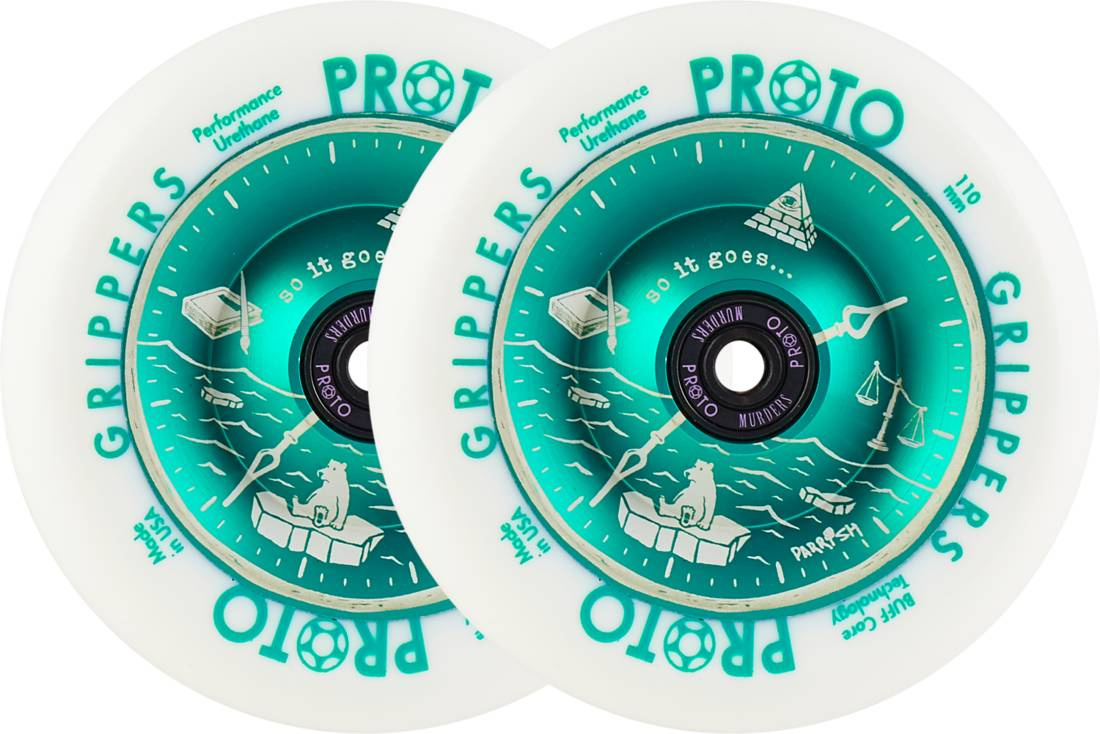 Měkčí, hladší a rychlejší. Takhle bychom formulovali kolečka Gripper od legendární značky PROTO. Kolečka jsou vyrobená v USA. Díky technologii BUFF core, která pomáhá absorbovat náraz, snižuje možnost svlíknutí kolečka a samotná jízda je pohodlnější. Střed kolečka je hliníkový. Také v prostoru pro ložisek jsou menší otvory, aby popřípadě ložiska šly jednoduše vytlouct.