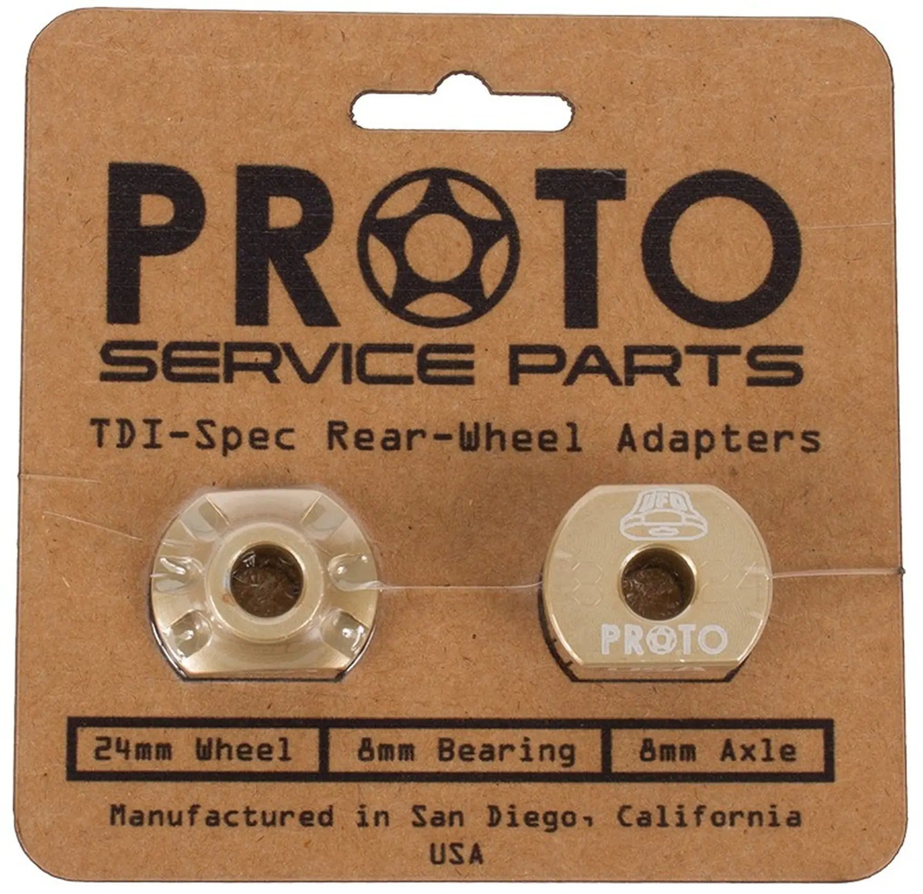 Sada 2-balení adaptérů na zadní kola Proto UFO umožňuje kompatibilitu s jakýmikoli koly na vaší PROTO TDI desce. Tyto adaptéry jsou vhodné pro kola o šířce 24 mm a 30 mm, stejně jako pro Osičky o průměru 8 mm a 12 mm, a zajišťují dokonalé uchycení. S těmito adaptéry lze kola vyžadující 12mm Osičky snadno přizpůsobit standardním 8mm Osičkám bez dalších dílů nebo úprav.