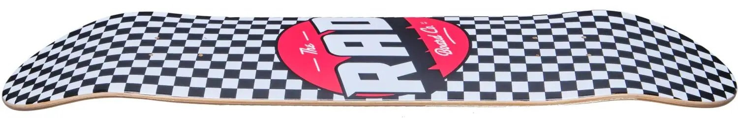 Checker od RAD je cennově dostupná skate deska, vyrobená z 7vrstvého javorového dřeva hard rock. Deska z hard rock javorového dřeva se dobře „nakopává“ do triku a má dlouhou životnost. V barvách spodní i dolní strany nedochází k žádným změnám, takže výsledné barvy budou přesně stejné jako na obrázcích.