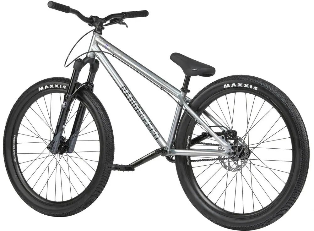 This model is especially designed for dirt jumps. With its 26" wheels, this bike is a true speed generator on the rollers. The frame is made rugged 4130 Chromoly steel to withstand tough use. Equipped with a cassette hub for direct pedal engagement.