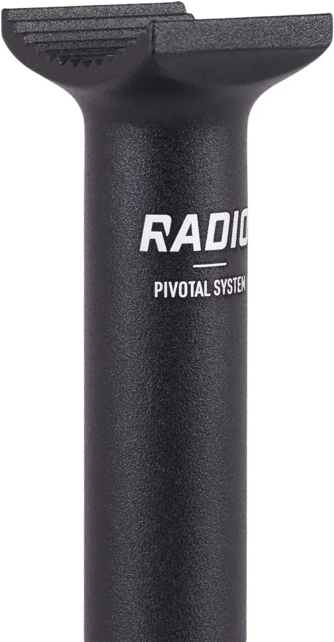 The Pivotal BMX Seat Post by Radio is 230mm long and comes in a classic 25.4mm size. It's 3D forged from 6061-T6 alloy, keeping the weight low while the durability high.