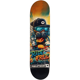 Vyzkoušejte skateboardovou desku Rampage Ride Free Grafitti, která je určena pro skateboardisty toužící po kombinaci stylu a odolnosti. Tato 32palcová deska, vyrobená z prvotřídního severoamerického javoru v robustní sedmivrstvé konstrukci, nabízí vyvážený rozvor 14 palců, který je ideální pro plynulé přechody. Její středně konkávní tvar a dvojitý kicktail přispívají k vynikající ovladatelnosti a umožňují vám bez omezení předvádět své triky.