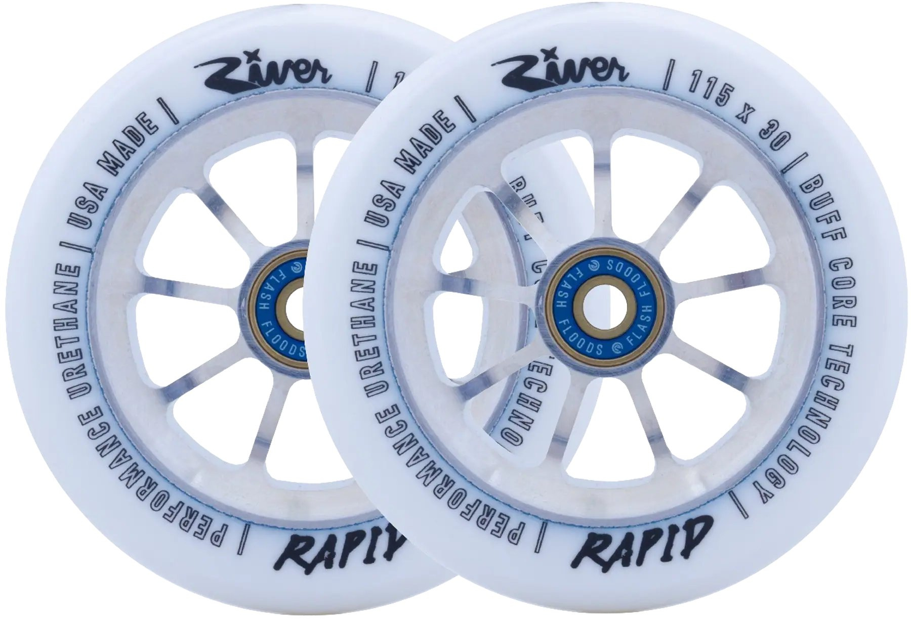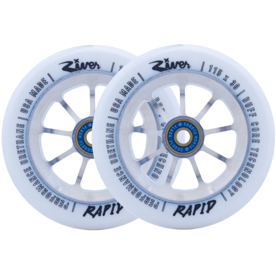 This is a wheel set for freestyle scooters. The core is made of aluminum and it has a spoked design.