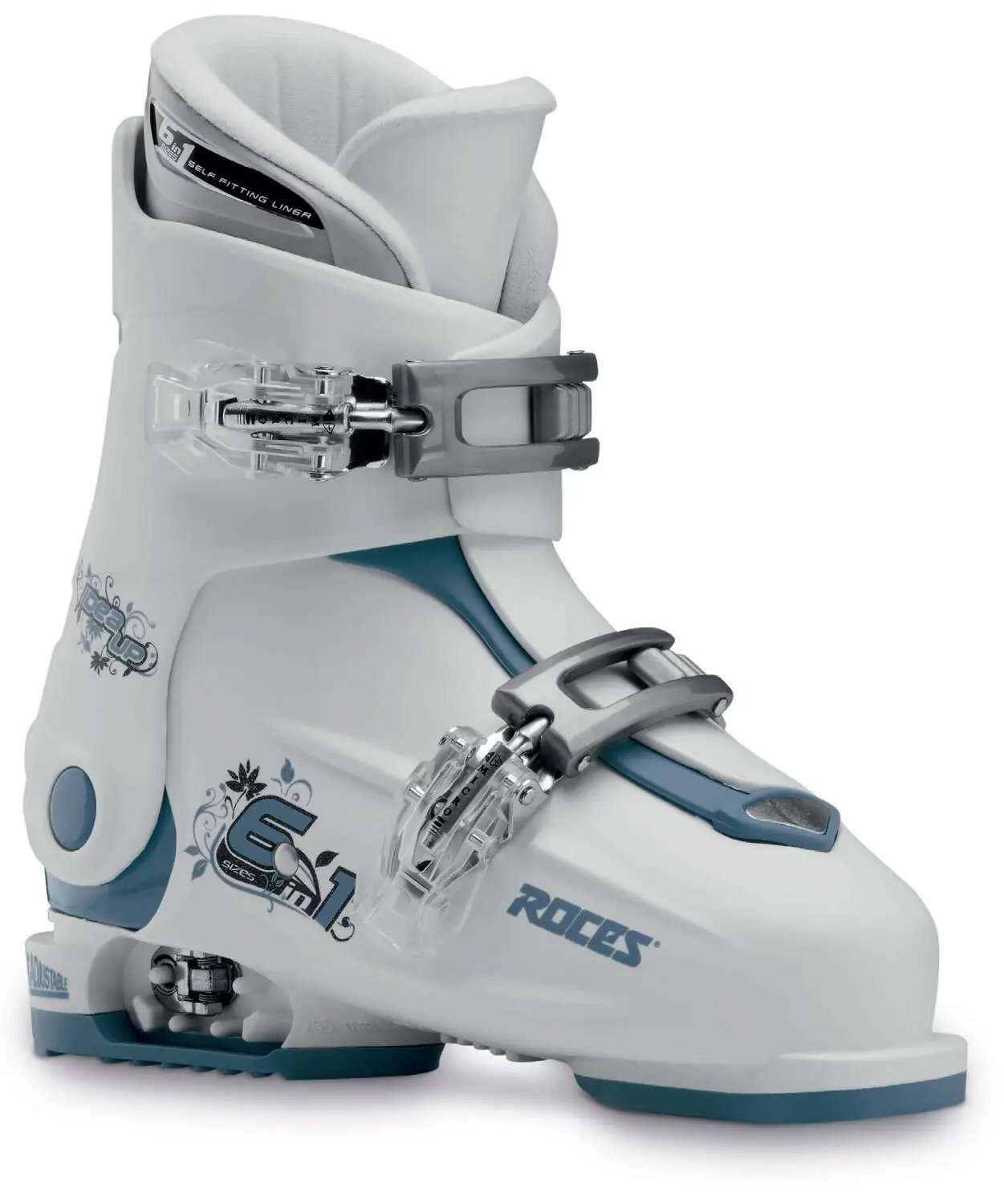Popis Roces Idea Up 6in1 Nastavitelné Dětské Lyžařské Boty (19-22|Bílá/Tyrkysová)