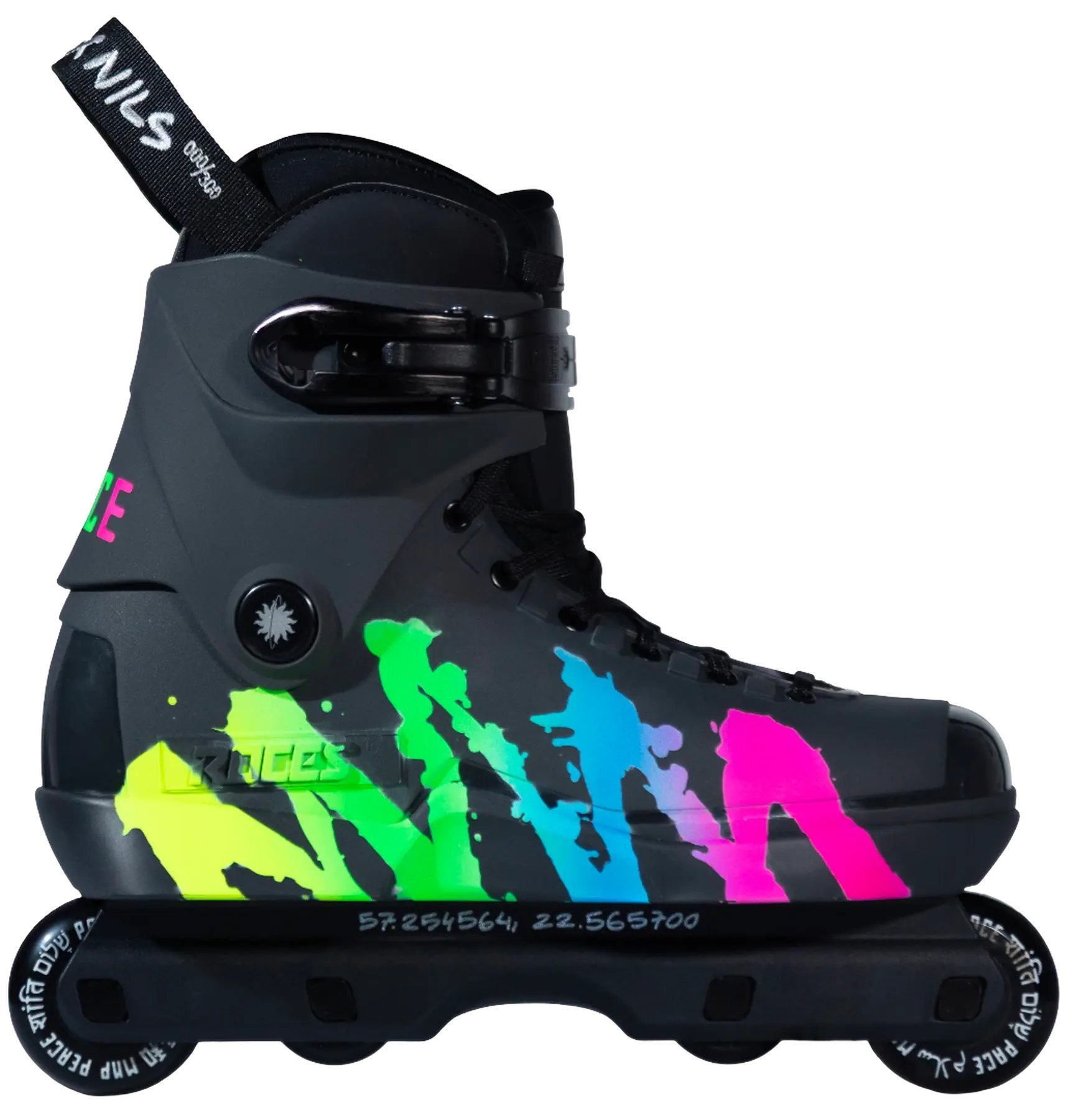 Inline brusle Roces M12 LO Plus Jansons Peace Aggressive jsou určeny pro odvážné bruslaře, kteří ztělesňují kreativitu a komunitu. Tyto brusle vzešly z jedinečné spolupráce s uznávaným bruslařem Nilsem Jansonem a známým lotyšským streetartovým umělcem Kiwie, přičemž každý pár je důkazem odvážného vyjádření a jednoty. Tyto brusle, jejichž počet je omezen na pouhých 300 párů vyrobených v Itálii a zdobených Kiwieho důkladnými, ekologickými uměleckými díly, jsou více než jen kusem sportovního vybavení - jsou symbolem míru a sdílené síly.