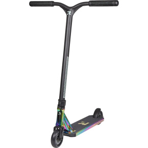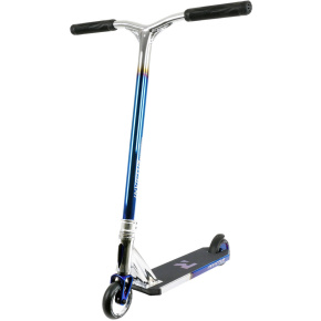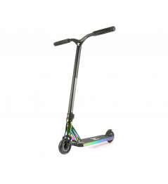 Lehká, pevná, výborná freestyle koloběžka. Díky hliníkovým řídítkům se vám budou lépe točit barspiny. Největší výhodou jsou nová 120 mm kolečka se šířkou 30 mm, která vám zajistí stabilitu a rychlost. Deska má jednodílný odlehčený krk. Také má hranaté dropouty. Lepší pro jízdu na streetu.