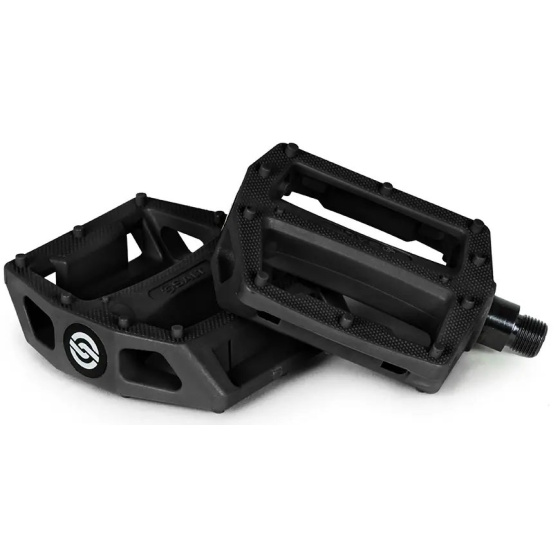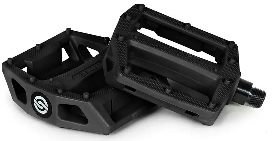 Features: knurled surface and extra pins for improved traction, crmo axle, strong nylon / fibreglass pedal body
