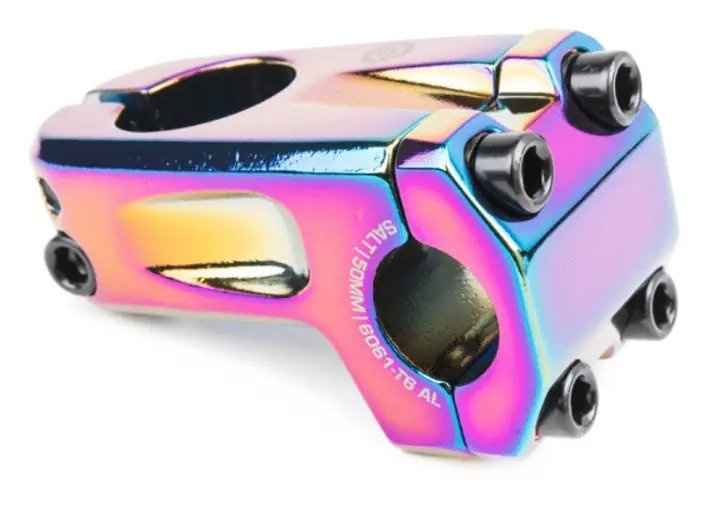Představec Salt AM je výkonný BMX představec pro freestyle kola a používá se k připevnění vidlice k řídítkům. Díky montáži front load budou vaše řídítka namontovaná o něco níže, což vám poskytne nejen elegantnější vzhled, ale taky větší stabilitu a lepší kontrolu. Vzhledem k tomu, že řídítka jsou trochu dále od jezdce, systém montáže front load často volí vysocí jezdci. Tento představec Salt váží pouze 301 g a nepřidá tak moc na hmotnosti vašemu nastavení. Díky klasickému průměru 22,2 mm je tento představec kompatibilní s řídítky jakékoli standardní velikosti.