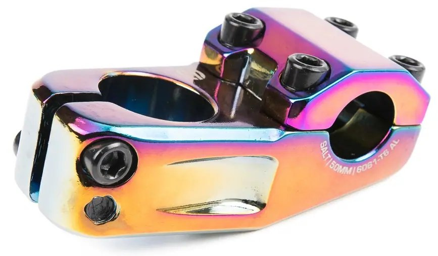 Představec AM Topload pro freestyle BMX kola k nám přichází z řady náhradních součástí Salt. Je vyroben s vysokým zdvihem a dosahem 50 mm. Byl odlehčen v klíčových oblastech a výsledkem jsou hezké vychytávky jako například postranní kapsičky. Představec Salt AM má upínání Shark Tooth uvnitř pro pevné a silné držení řidítek.
