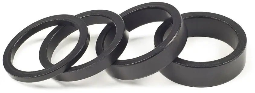 Sada distančních kroužků pro nastavení komprese. Sada s 3 mm, 5 mm, 8 mm a 10 mm distančními podložkami.