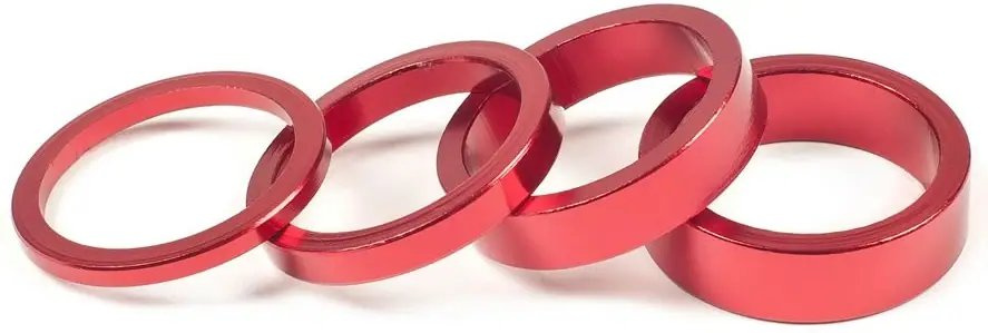 Sada distančních kroužků pro nastavení komprese. Sada s 3 mm, 5 mm, 8 mm a 10 mm distančními podložkami.