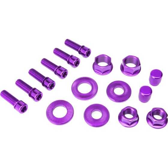 Sada matic a šroubů značky Salt je skvělá kombinace klíčových náhradních dílů, které často a na většině modelů kol potřebují výměnu. Mějte je po ruce pro případ nutnosti, nebo, pokud chcete změnit barvu, je můžete použít okamžitě.