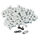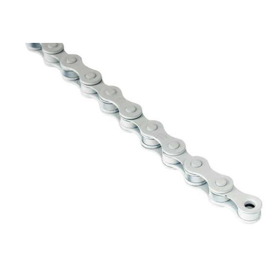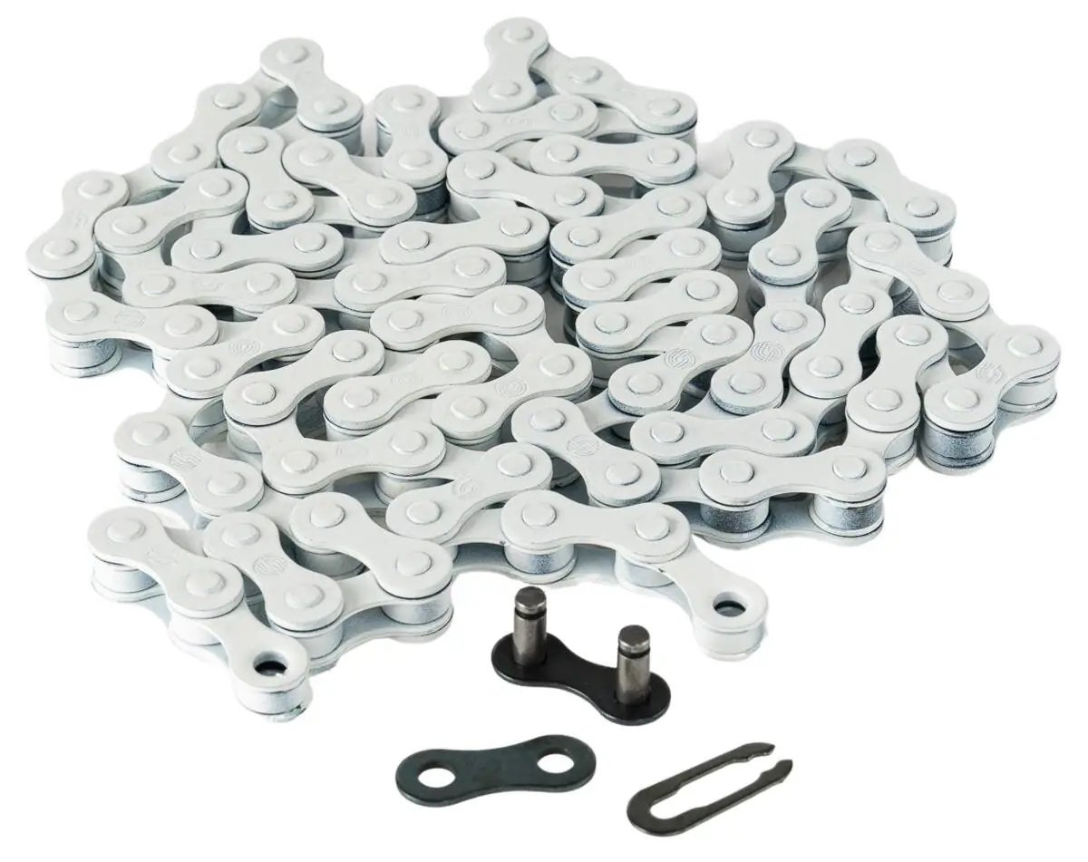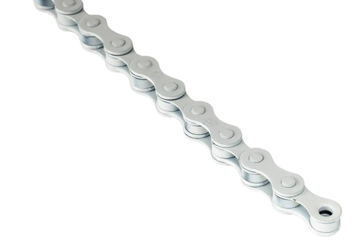 The Traction BMX Chain by Salt is a heavy-duty BMX chain, meaning its a bit heavier in weight, but also more durable. It's a single-speed 410-type chain, made from durable chrome-treated steel.