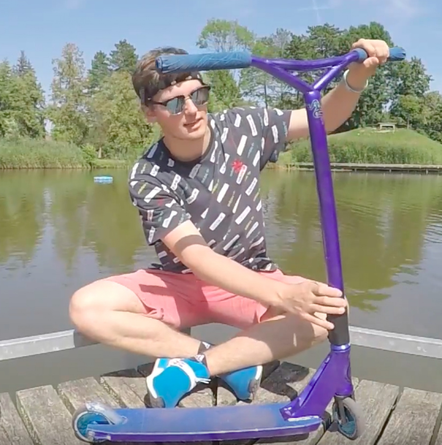 Ahojda já jsem Jirka a dnes Vám představím svou kolobežku. Na začátku videa uvidíte něco z mého každodenního ježdění, pár triků a možná 1-2 bangery. Kolobežku si skládám už 6 rokem. Vždy jsem dbal na to, aby všechny díly seděly jak technicky, tak stylově. Díly jsou pěčlivě vybrány a proto moje koloběžka nevyžaduje žádnou péči. Řidítka Crisp, na kterých jsou modré Ethic gripy, mám už 3 roky a jsou seřízlé na SCS. SCS jsem dostal od Scootshopu a je to prototyp od Sacrafice, který bohužel nešel do výroby. Je pevné a dost dobře vypadá. Hlavové složení jsem volil Chilli. Je kvalitní, dlouho vydrží a je za super cenu. Vydlice značky Micro Xtreme mě velice překvapila. Pevná, lehká a skvělá na jízdy po předním kolečku. Kolečka Root Industries jsem volil hlavně kvůli vzhledu, ale po jízdní zkušenosti už bych nevolil jiné. A na závěr deska District DK2 z roku 2011. Starý poctivý kus hliníku co vydrží snad vše. Lehká, ideálně dlouhá a designově nadčasová. Mám na ní jessup modrý griptape a jsem naprosto spokojen.
