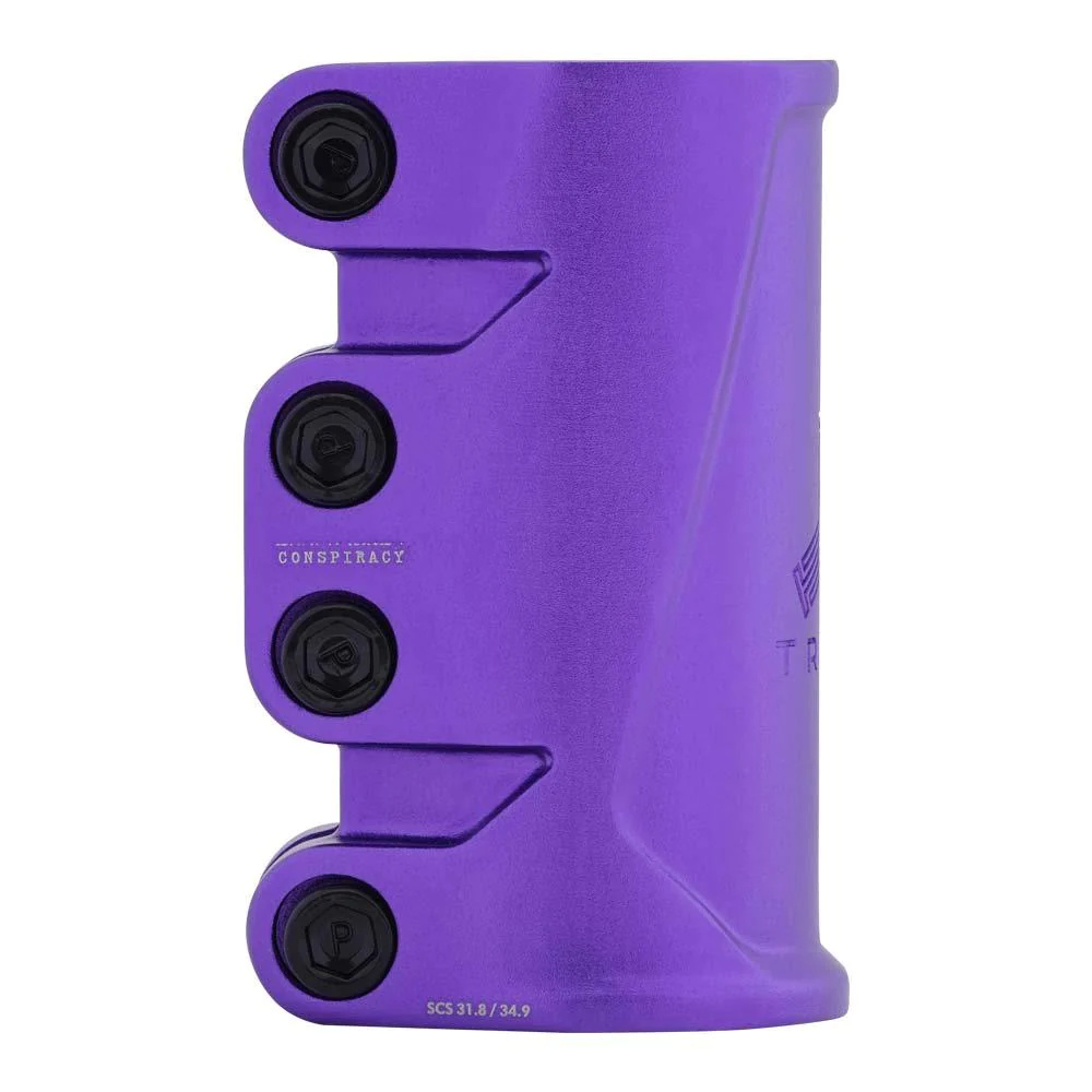 Triad je australská značka složená nejlepšími jezdci po celém světě. Conspiracy je nová modelová řada, kterou navrhnuli a otestovali samotní jezdci. Hmotnost celého SCS je 235 gramů a to právě díky tomu že je vyráběna z kvalitního hliníku 6061 se stupněm pevnosti T6. Do SCS se vám vejdou jak standard (32 mm) tak i oversized (35 mm) řidítka a to právě díky SHIMU, který je součástí balení včetně SCS top capu a kompresního šroubu.