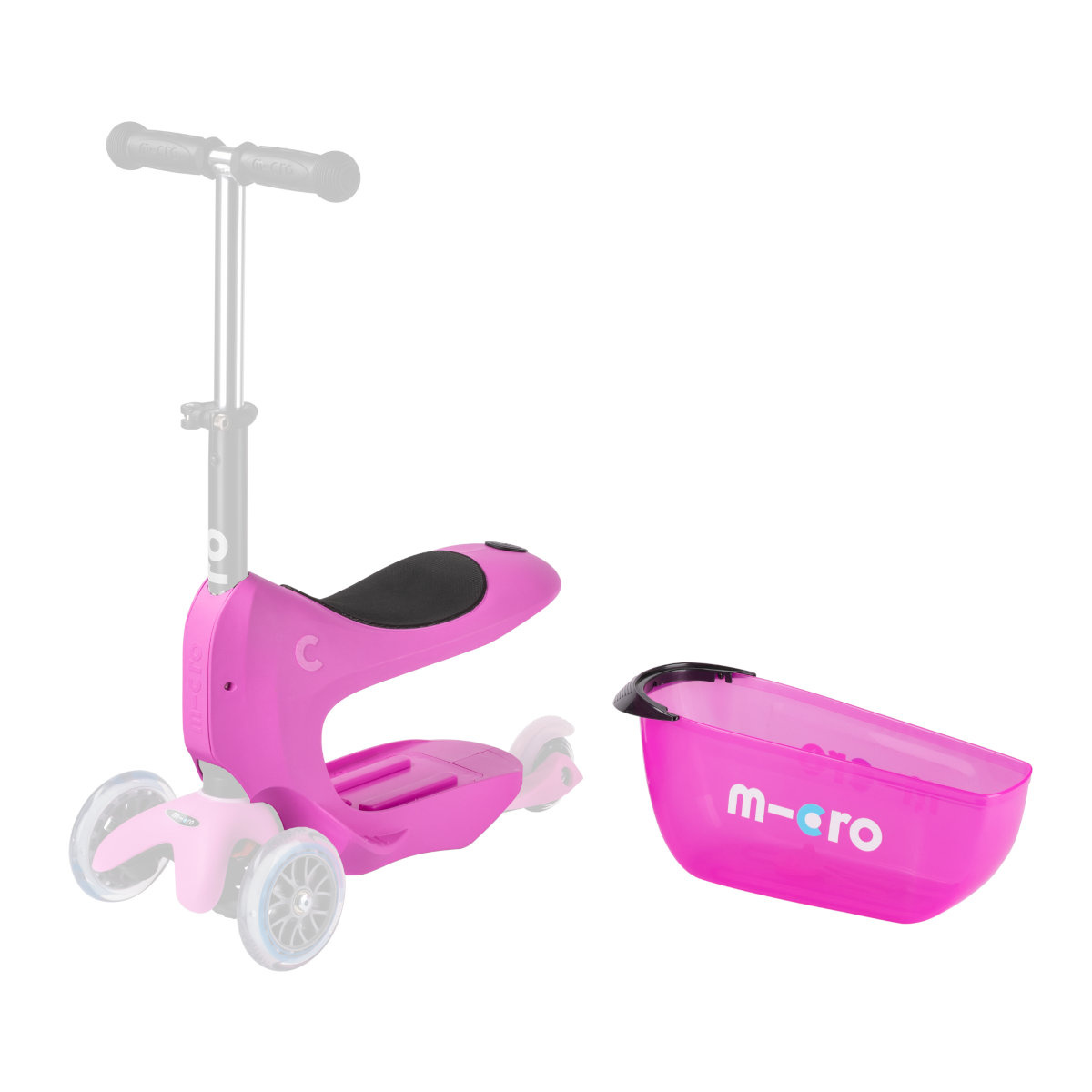 Sedátko pro koloběžku Micro Mini2go Deluxe v růžové barvě.