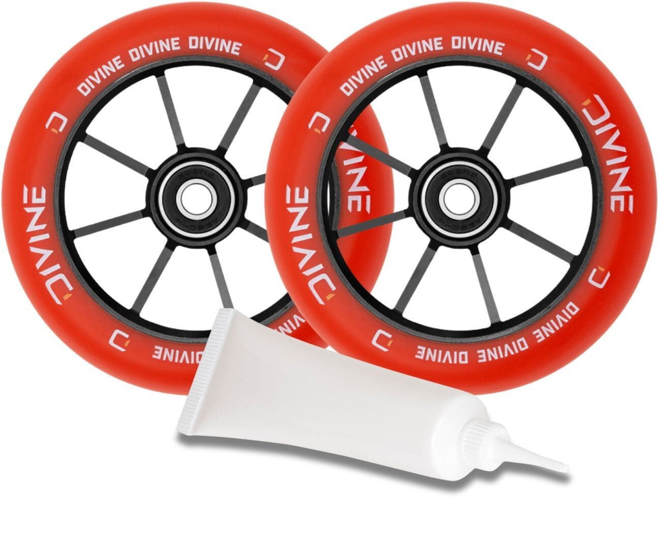 Popis Set 2ks koleček Divine 110 mm Spoked červené + Divine olej pro ložiska