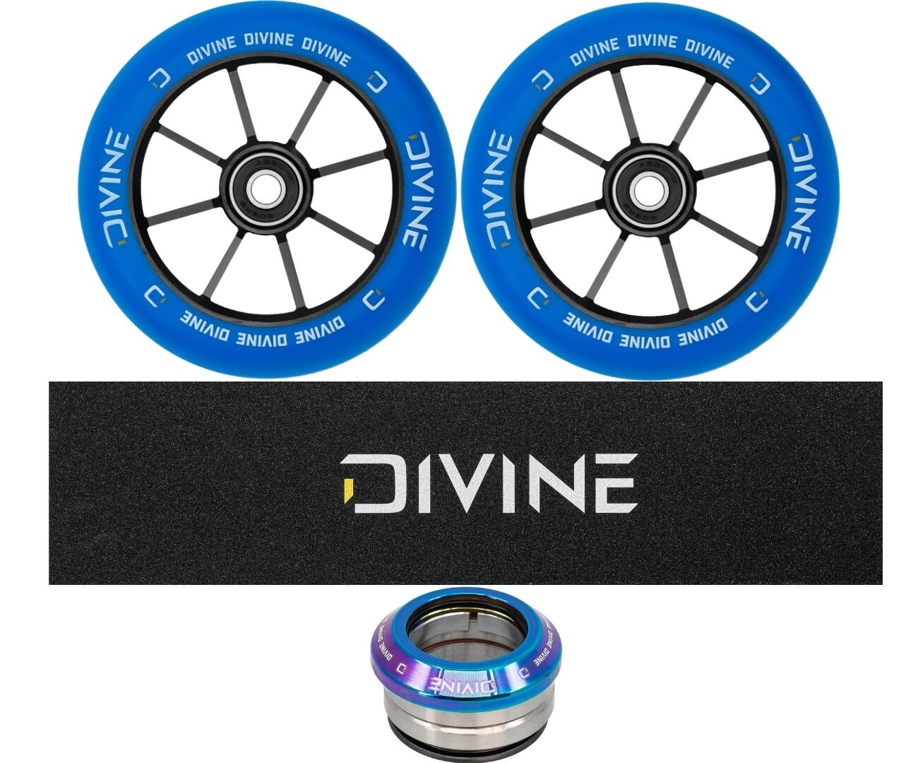 Popis Set 2ks koleček Divine 110 mm Spoked modré + Divine griptape + Divine headset
