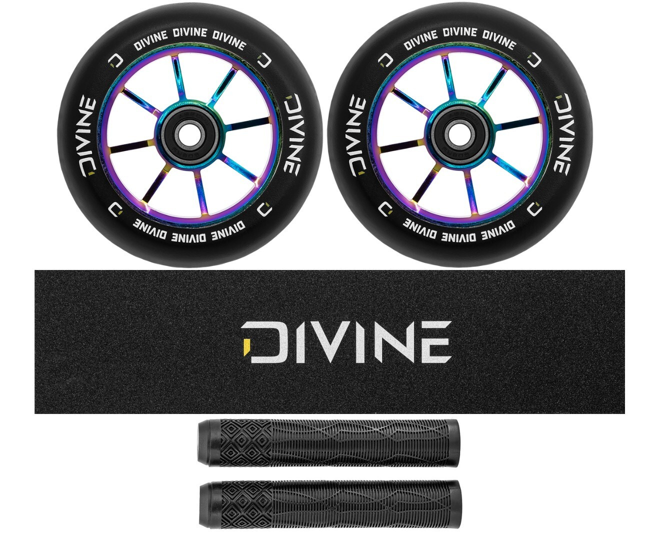 Set 2ks koleček Divine 120 mm Spoked neochrome + Divine griptape + Divine gripy