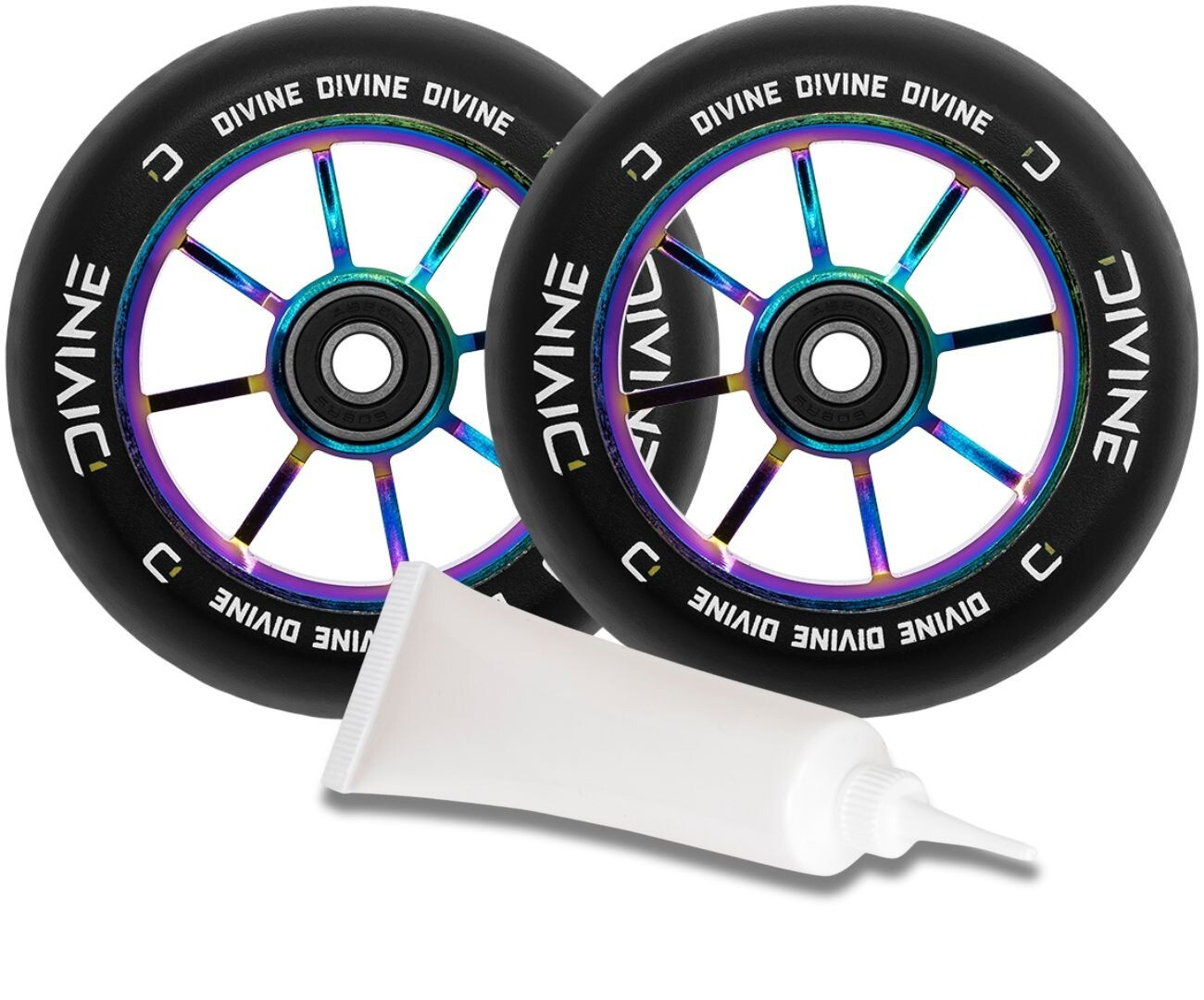 Popis Set 2ks koleček Divine 120 mm Spoked neochrome + Divine olej pro ložiska