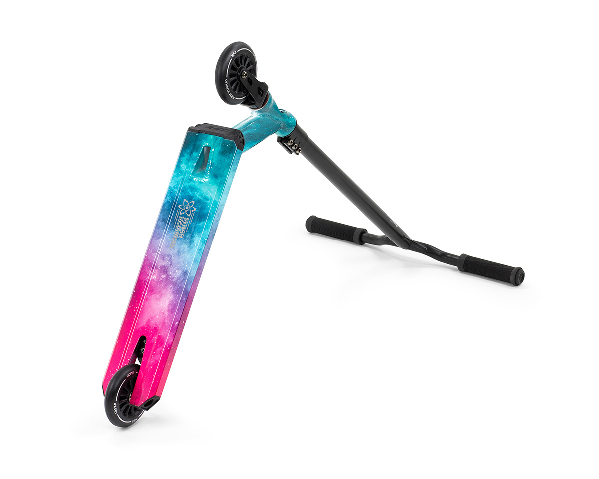 Výborná freestyle koloběžka ze skvělým designem od známe značky Slamm. Výborná pro starší začátečníky. Má skvělá kolečka s hliníkový středem ve velikosti 110mm. Výbornou, lehkou desku pro integrované headsety. Výborná do skateparku na naučení základních i mírně pokročilých triků.