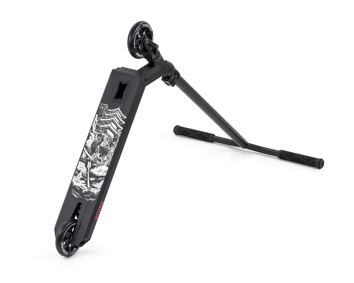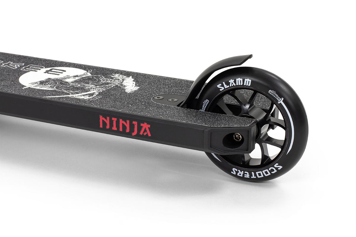 Chceš bejt jako Ninja? Tak máme koloběžku přímo pro tebe! Nejen, že má skvělý design, ale také má skvělé rozměry! Výborná ocelová řídítka s délkou 622mm. Skvělá hliníková, jednodílná vidlice až pro kolečka 120mm. Výborná deska se šířkou 122mm. Super rychlá 110mm kolečka s hliníkovým středem. Výborná koloběžka pro mírně pokročilé jezdce. Skvělá do skateparku i na menší street.