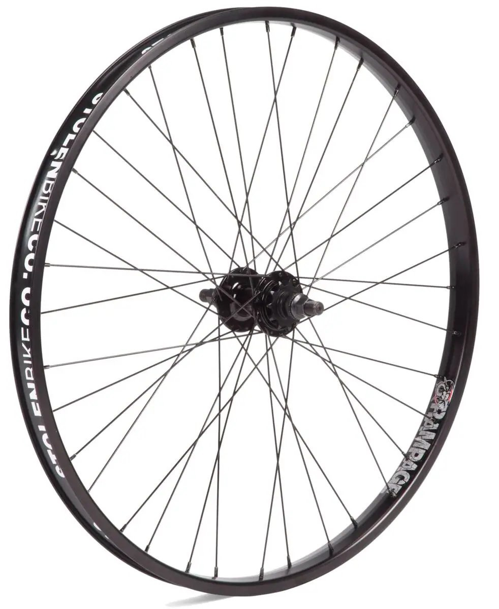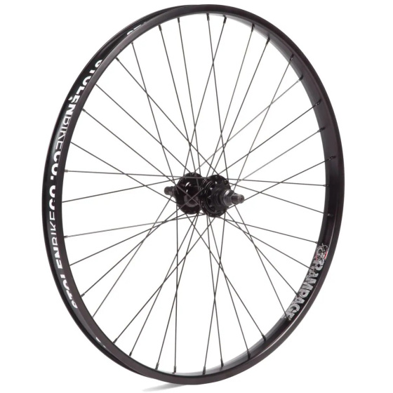 This is a rear wheel for freestyle BMX. It is made with a double walled rim for robustness and durability.