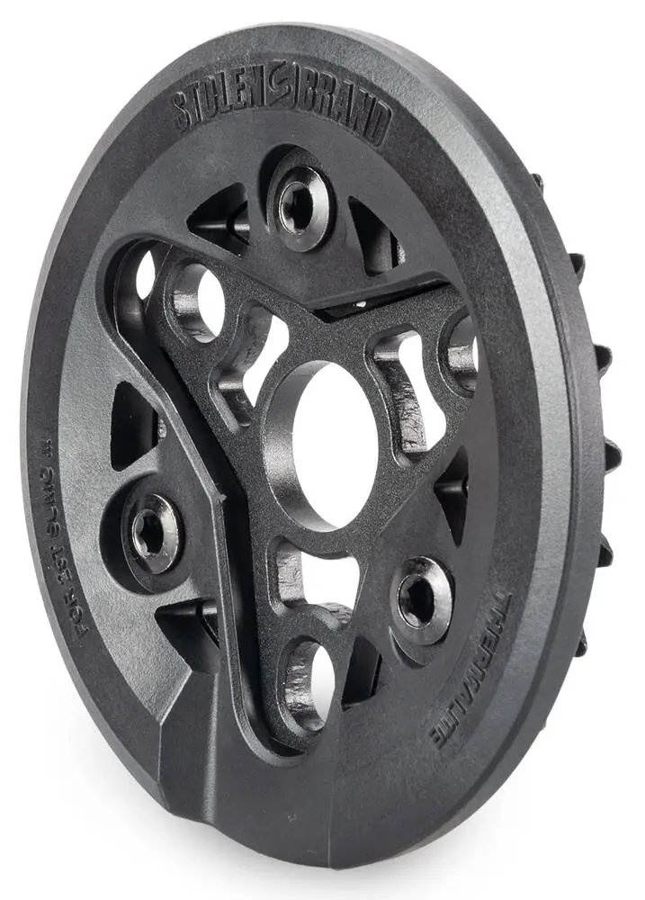Stolen Sumo III Guard Freestyle je výkonný BMX převodník pro freestyle kola. S hmotností 65g, Sumo III Guard Freestyle je ideální pro technické jezdce, kteří se snaží získat maximální kontrolu nad kolem při jízde ve skateparku. Tento Stolen převodník je kompatibilní s 19mm a 22mm osami.