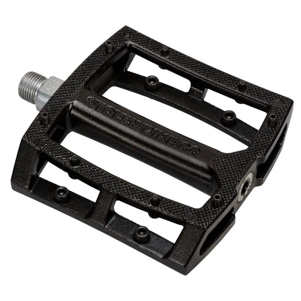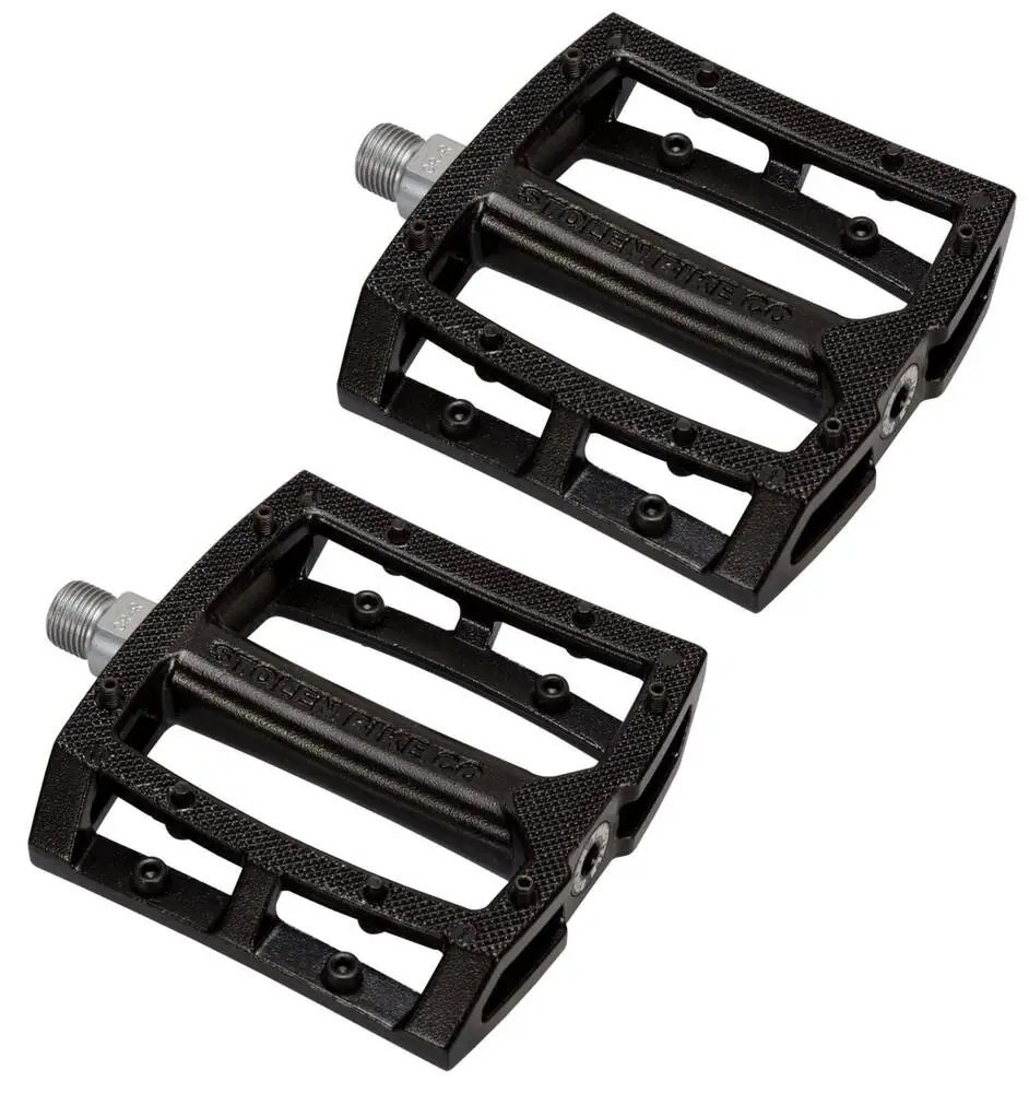 Stolen Throttle Sealed Auminum jsou freestyle BMX pedály s průměrem osy 9/16", díky čemuž jsou kompatibilní s dvoudílnými a třídílnými klikami. Jsou vyrobeny z odolné a spolehlivé kovové slitiny. Osy jsou vyrobeny z odolné chromoly oceli, která zaručuje dodatečnou trvanlivost. Pedály mají hladký chod díky utěsněným ložiskům, která jsou prakticky bezúdržbová. S velkými plochami pedálů, jako jsou tyto, je snazší zachytit pedály při přistání.
