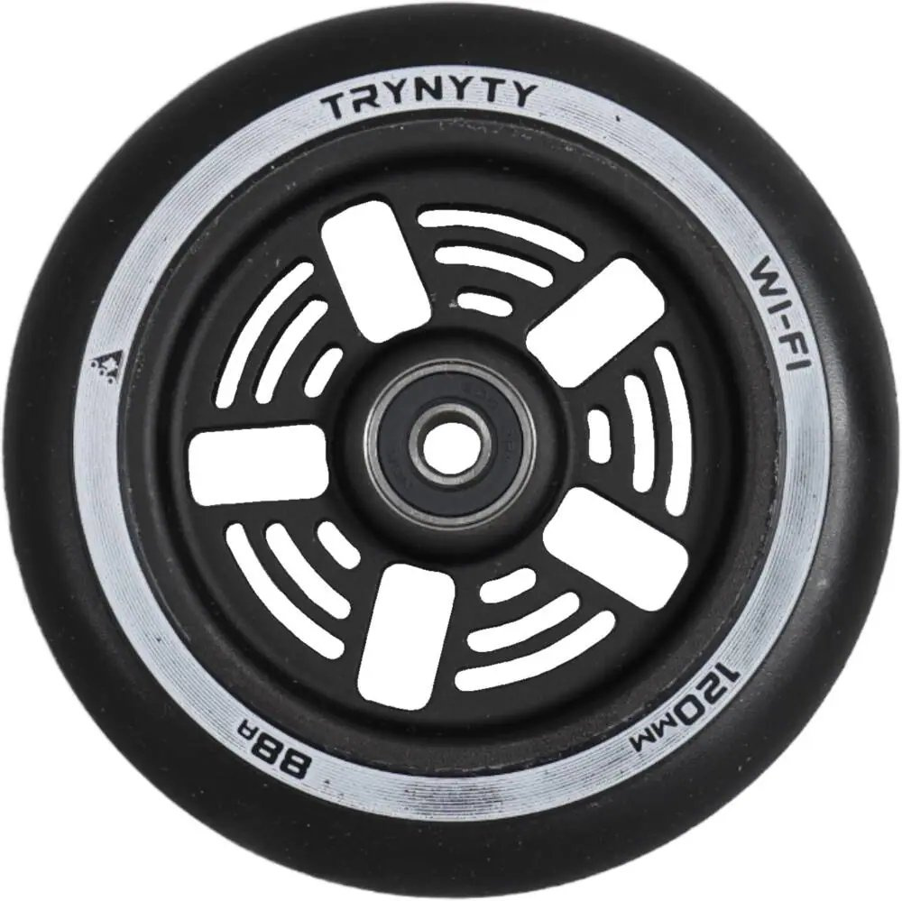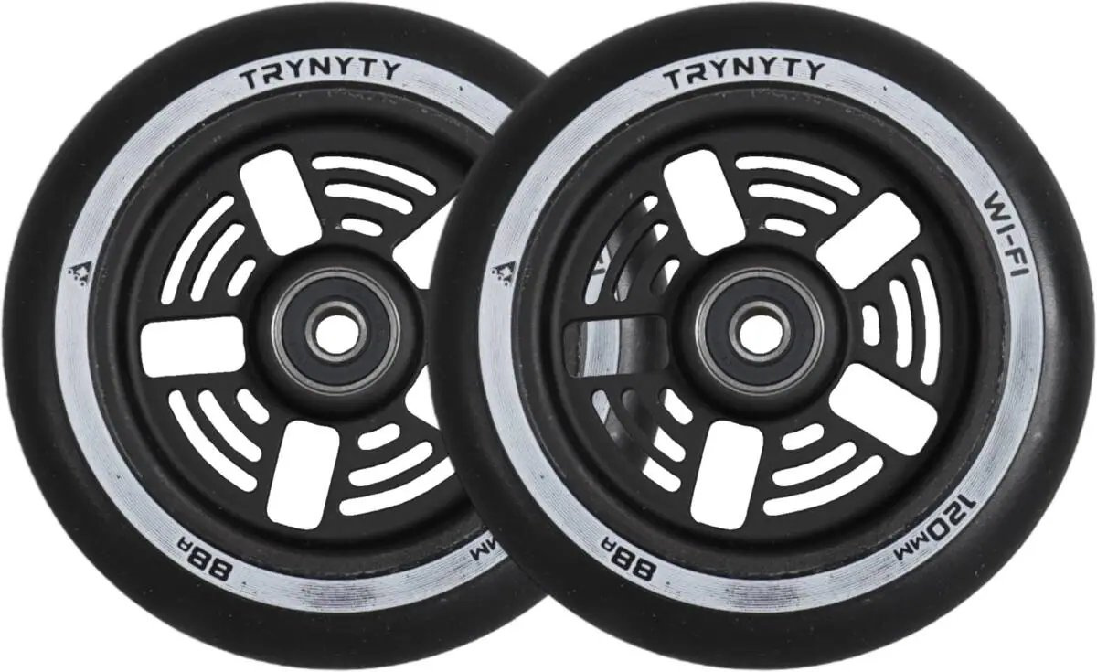 Toto je Wi-Fi pro scooter sada koleček značky Trynyty. Kolo má paprskové jádro které je vyrobeno z hliníku 6061, které má klasický vzhled a také všechny správné vlastnosti, jako je nízká hmotnost a odolnost. Tvrdost 88A navíc svědčí o dokonalé kombinaci přilnavosti a rychlosti kolečka, díky čemuž je skvělé pro jízdu na ulici i v parku. Trynyty navrhla kolečko se zaobleným profilem, který zaručuje stabilitu a snížené tření, což se promítá do vyšší rychlosti.