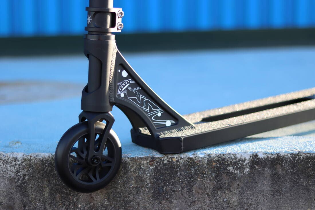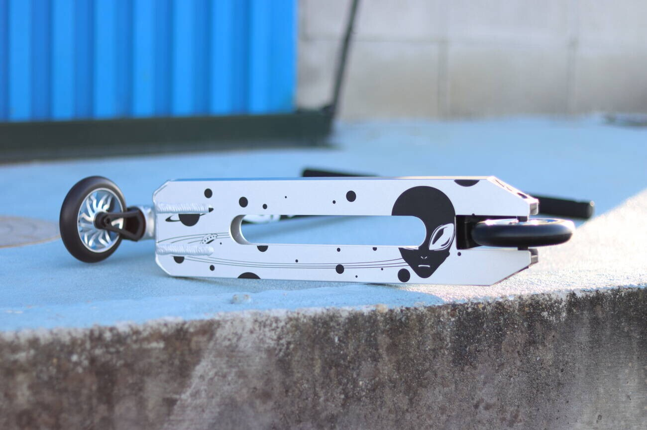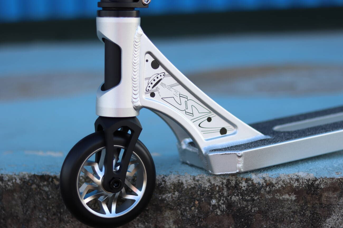 JP Scooters je značka založená jezdcem Sogo Sakakibara žijícím v Japonsku a zaměřuje se na skvělou vyváženost a perfektní design. Koloběžka Mirai je toho důkazem a to díky své nízké hmotnosti (3040g) a perfektním rozměrům. Koloběžka je určena pro mírně pokročilé/pokročilejší jezdce do skateparku. Na koloběžce jsou ocelová téčková řidítka o rozměrech 620 x 560 mm na kterých jsou nasunuté foam gripy. Jako kompresní systém byl použit HIC, který krásně pasuje dohromady s jednodílnou hliníkovou vidlicí. Koloběžka se ladně otáčí díky integrovanému hlavovému složení. Deska je sen každého parkera a to díky jejím rozměrům, 490 mm na délku, 119 mm na šířku a 320 mm jako footspace. Na koloběžce nalezneme 110 mm kolečka s hliníkovým středem a ABEC 9 ložisky a na konci je skvěle vydesignovaná brzda.