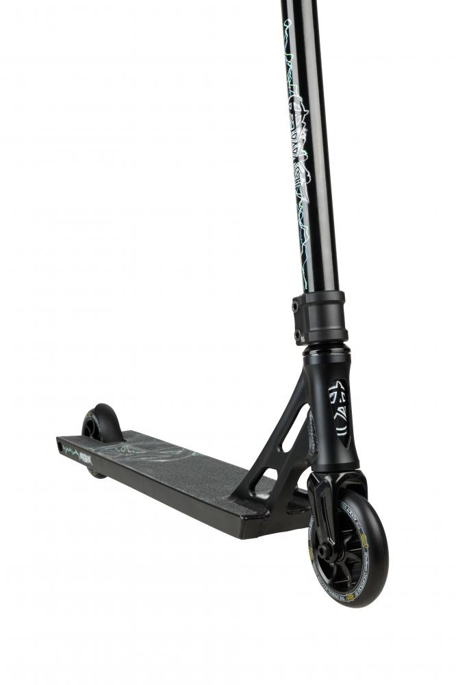 Hodnocení: Žádný mínus jsme nenašli, jediné co bychom vytkli jako drobnost je zářez, který mohl být trošičku menší, ale vidlice s HIC kompresním systémem je dostatečně vysoká, takže by to neměl být problém. Za nás, opravdu super streetová koloběžka za skvělou cenu! Obrovským plusem jsou rozhodně i Eagle kolečka, protože tato kolečka jsou jedny z nejkvalitnějších na trhu. Super jsou i gripy i backsweep! Za nás tedy rozhodně koloběžku doporučujeme!
