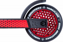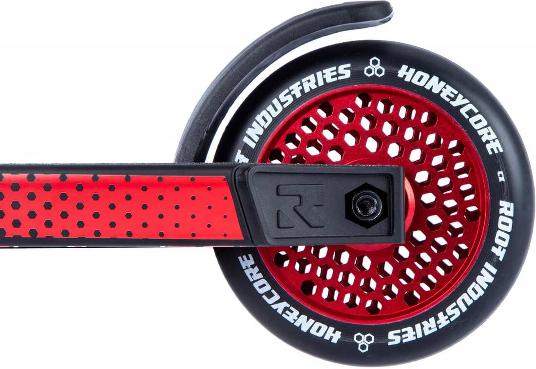 Deska koloběžky má bezvadný design, je skvěle odlehčená. Odlehčená deska se kterou vám půjdou i ty nejtěžší triky. Na koloběžce je pár známých Root Industries Honeycore 110 mm koleček. A na konci desky je plastová flex fender brzda. Délka desky je 500 mm a šířka desky je 123 mm. Je zde IHC compr. systém, vidlice je jednodílná.