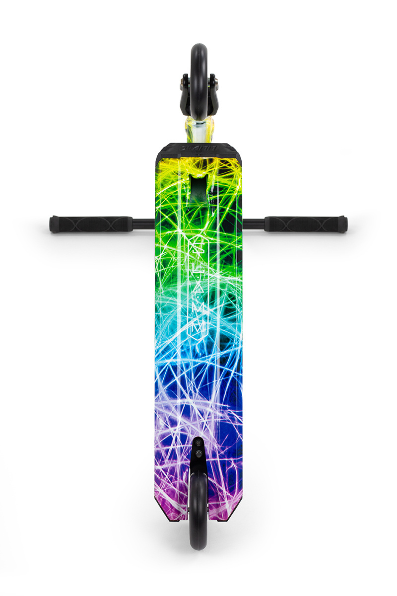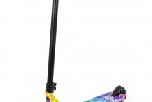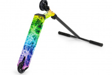 Hodnocení: Koloběžka se nám celkově rozhodně moc líbí svým designem, super výhodou jsou 2 griptapy, které ke koloběžce dostanete a dlouho jsme se s ničím podobným nesetkali. Takovým mínusem je již zmiňovaná podložka, takže na to si dávejte rozhodně pozor a pořádně řídítka přitáhněte. Naopak plusem je rozhodně provedení objímky. Koloběžka je za super cenu, vychytali provedení objímky, ale zářez by za nás mohl být schovaný. Deska koloběžky má 122 mm na šířku a je 520 mm dlouhá, což je nejlepší kombinace pro jezdce, co jezdí ve skateparku.