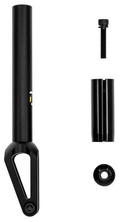 Lehká a designově krásná vidlice, která je navržena českou firmou Divine. Na vidlici je použitý kvalitní, pevný, lehký hliník a díky tomu vidlice váží pouze 249 gramů. Vidlice je z jednoho kusu a má integrovaný spodní C-ring. Stačí pouze nasadit průmyslové ložisko a je to! Pro kolečka až 120 mm se šířkou 24 mm.