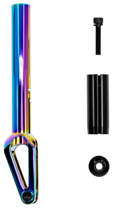 Lehká a designově krásná vidlice, která je navržena českou firmou Divine. Na vidlici je použitý kvalitní, pevný, lehký hliník a díky tomu vidlice váží pouze 249 gramů. Vidlice je z jednoho kusu a má integrovaný spodní C-ring. Stačí pouze nasadit průmyslové ložisko a je to! Pro kolečka až 120 mm se šířkou 24 mm.