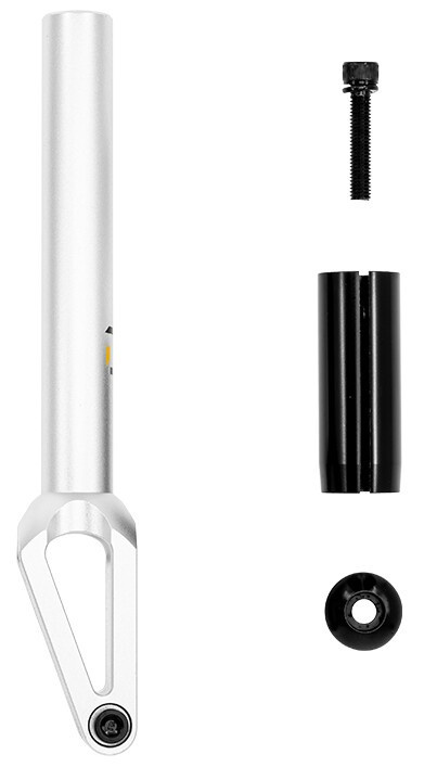 Lehká a designově krásná vidlice, která je navržena českou firmou Divine. Na vidlici je použitý kvalitní, pevný, lehký hliník a díky tomu vidlice váží pouze 249 gramů. Vidlice je z jednoho kusu a má integrovaný spodní C-ring. Stačí pouze nasadit průmyslové ložisko a je to! Pro kolečka až 120 mm se šířkou 24 mm.