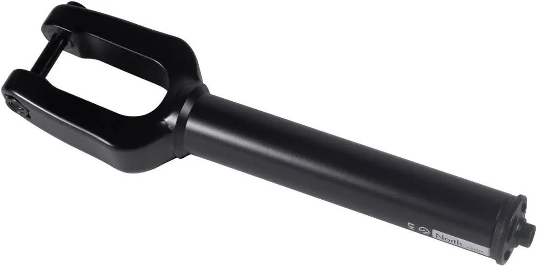Velice kvalitní vidlice od kanadského výrobce North Scooters. Bytelná, lehká, bezzávitová, jednodílná vidlice pro kolečko o maximálním rozměru 120x24 mm. Vidlice má integrovaný spodní kroužek pro headset. Vidlice je určena pro kompresní systémy SCS anebo HIC. Délka vidlice je 145 mm.